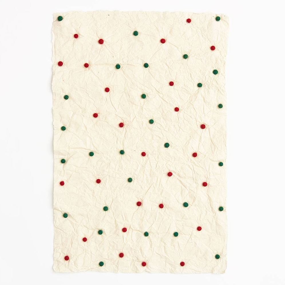 This flat wrap wrapping paper features pom poms in red and green! Perfect for gift wrapping. crafting. or decor!