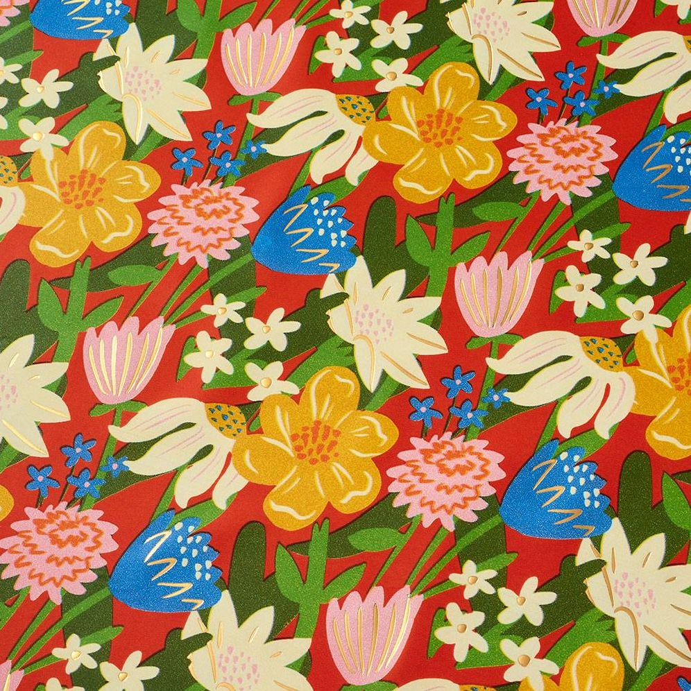 A painterly floral design with a all the bright colors makes for a lovely gift wrap. Watch your gift bloom!