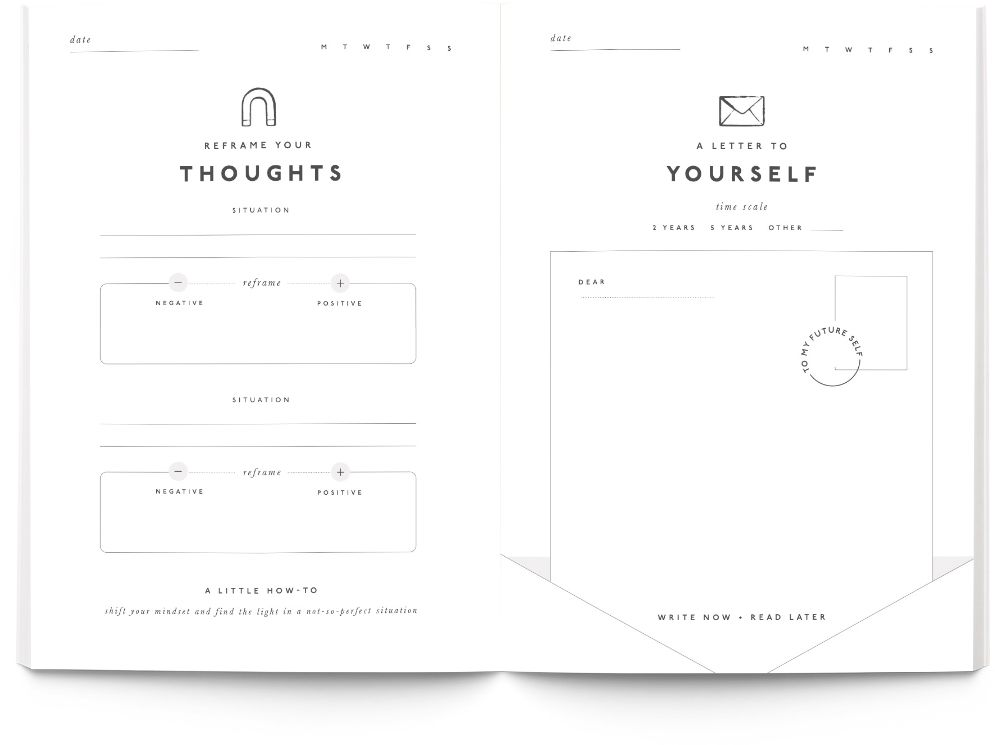 - 30-day reflections to record thoughts. feelings. moments and lessons from the past month