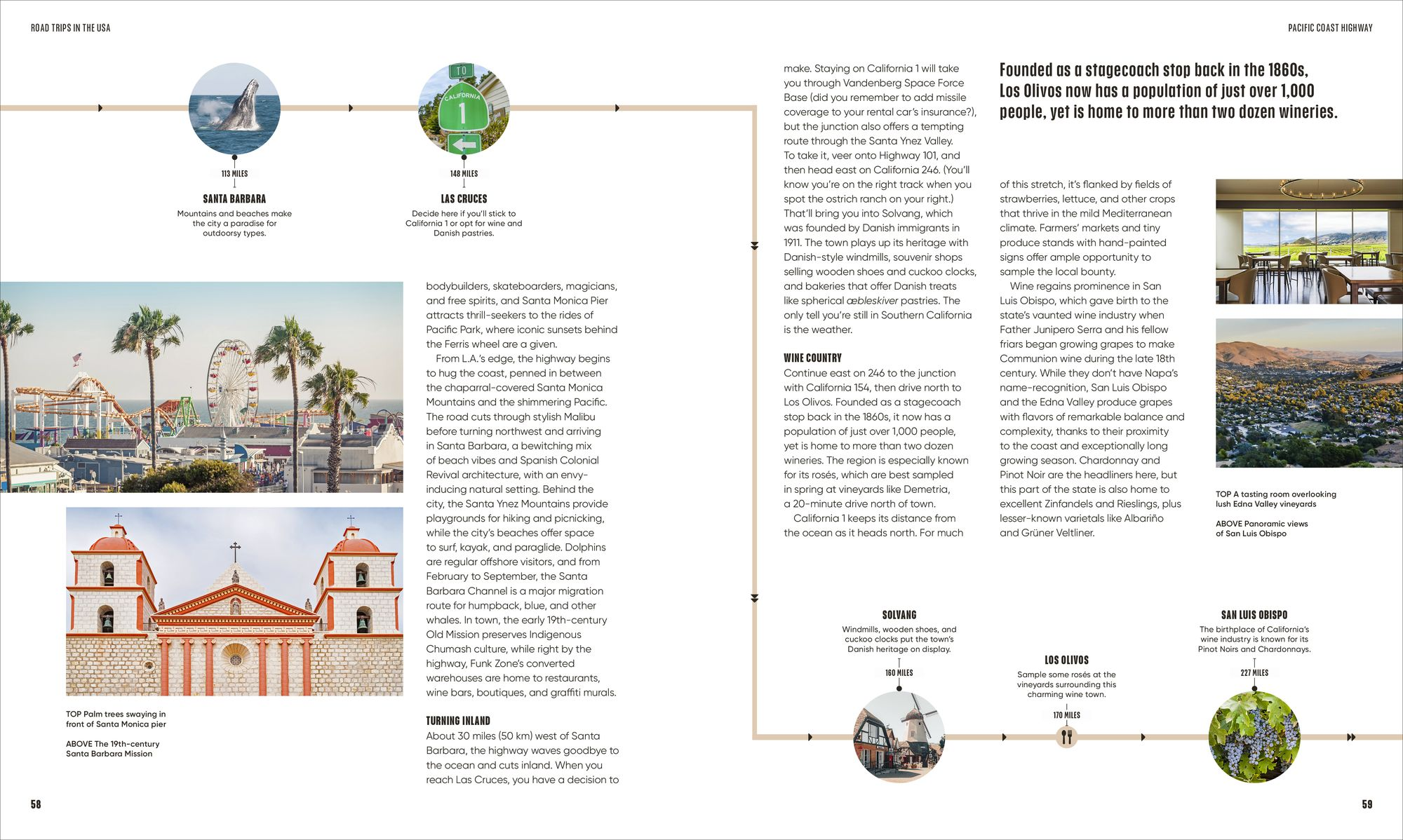 - Inspirational maps pinpointing all the key stops to make en route. such as classic landmarks and historic restaurants