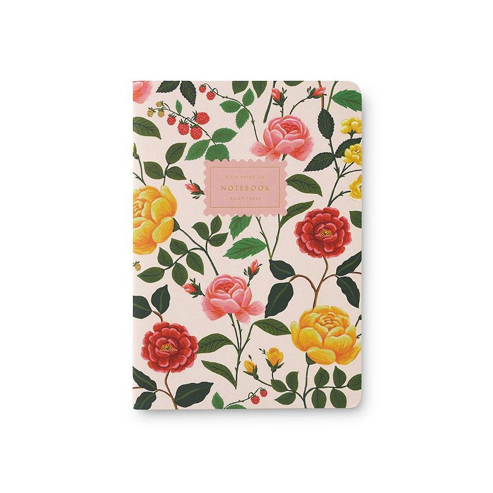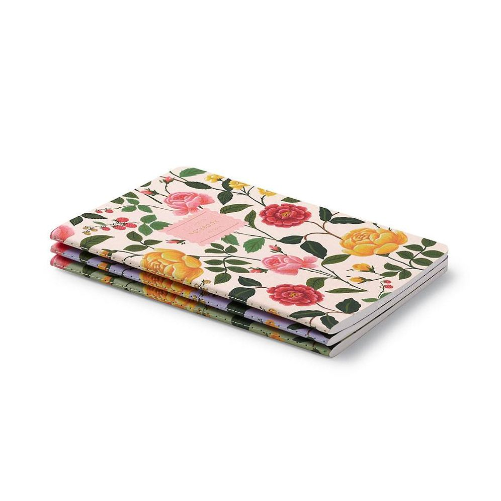 Good things come in threes. and Rifle Paper Co. Stitched Notebook Sets are no exception. Each bundle features three notebooks with full-color rose-printed covers. stitched binding. gold foil accents. and 64 ruled pages.