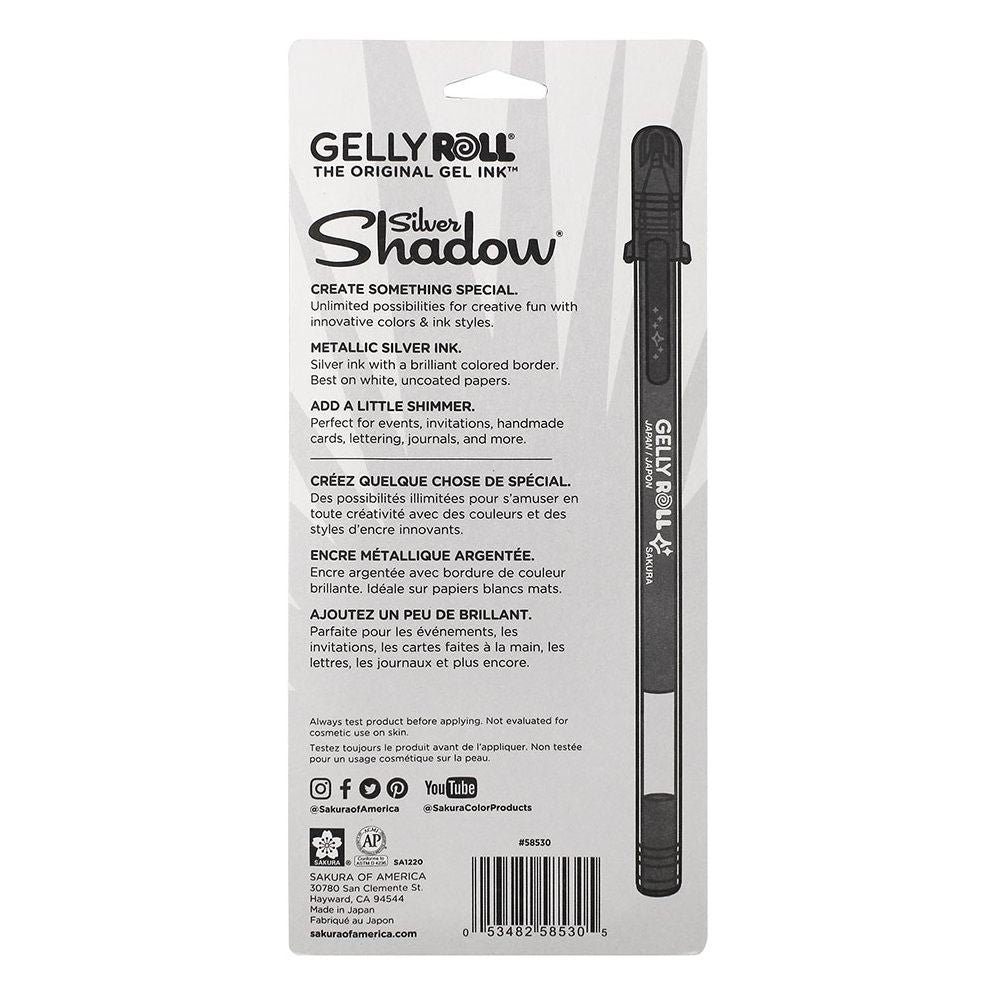 SAKURA-Silver Shadow Metallic Pens. When an occasion or note requires that extra something special-use silver shadow for that quick and easy WOW! effect. These incredible gel ink pens write in metallic silver and automatically creates a brilliant colored border as you write! Create a piece of art with every stroke! Dress up your words or signature by choosing from the 5 contrasting border colors: orange; pink; green; blue; and purple. Add excitement in your notes; cards; and invitations. With a 1.0mm ball for a bold line; silver shadow dries instantly. The outlining effect is best achieved on white; uncoated; fibrous paper. No need to shake; pump; or squeeze; just write like you would with any gel pen. Conforms to ASTM D4236. Imported.