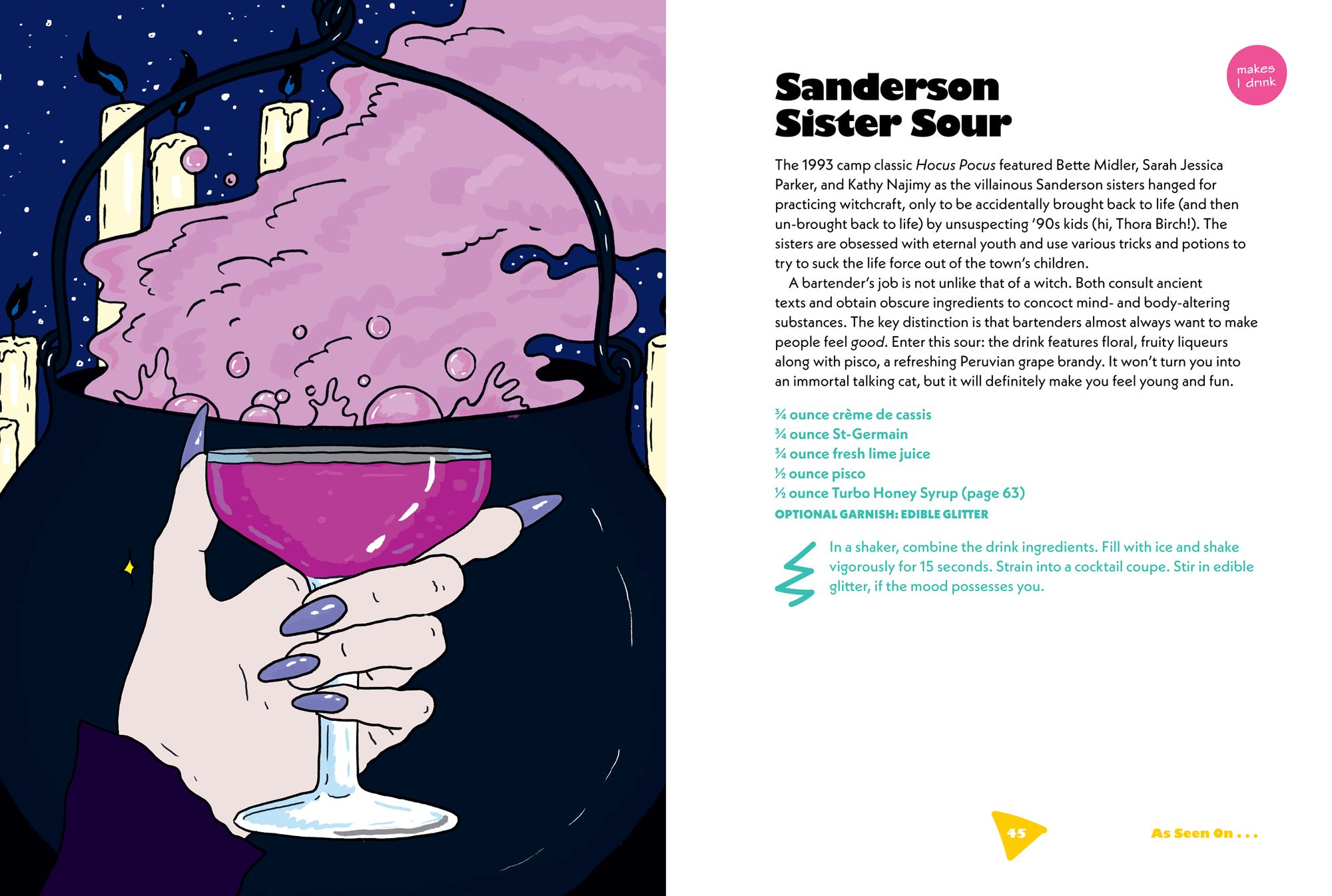 Get ready to stir up memories??and some hella delicious drinks. This cocktail book has 65+ awesome recipes that celebrate the decade’s greatest pop culture moments. from cassette tape tunes and video game consoles to after-school snacks and OMG-it’s-back-again fashion. Sip on the Gusher Crusher. down the Away Message. serve up the Heart of the Ocean. and finish it all with the Waterfall Chaser. Only in this ’90s book does TGIF stand for Thank God It’s Fizzy! Throwbacks to Pogs. the slap bracelet. Reebok Pumps. and even the ubiquitous Got Milk? ads are accompanied by spunky. funky pop-art illustrations that are so sick. you might want to tear out the pages to hang next to your Tiger Beat JTT posters. As if!??
