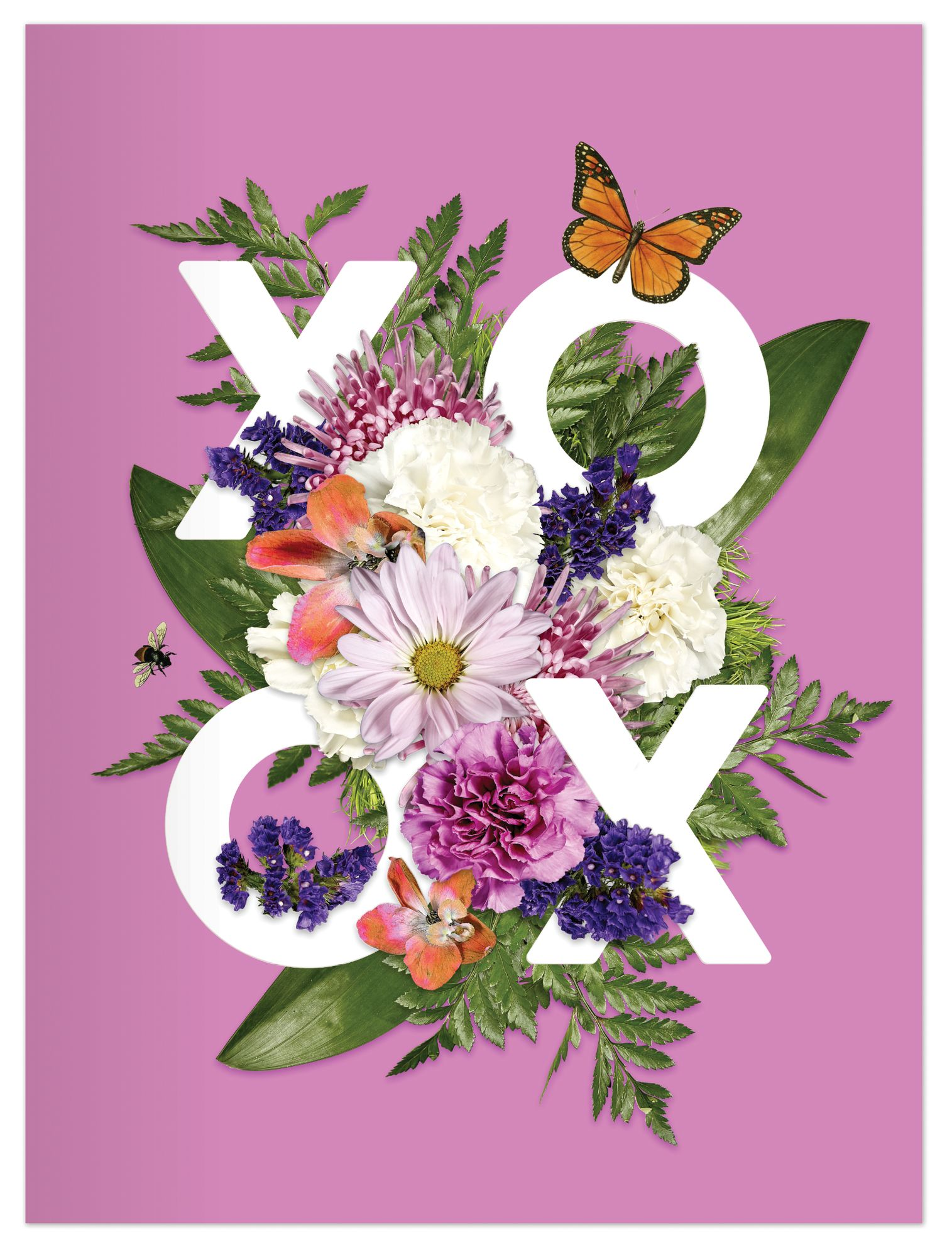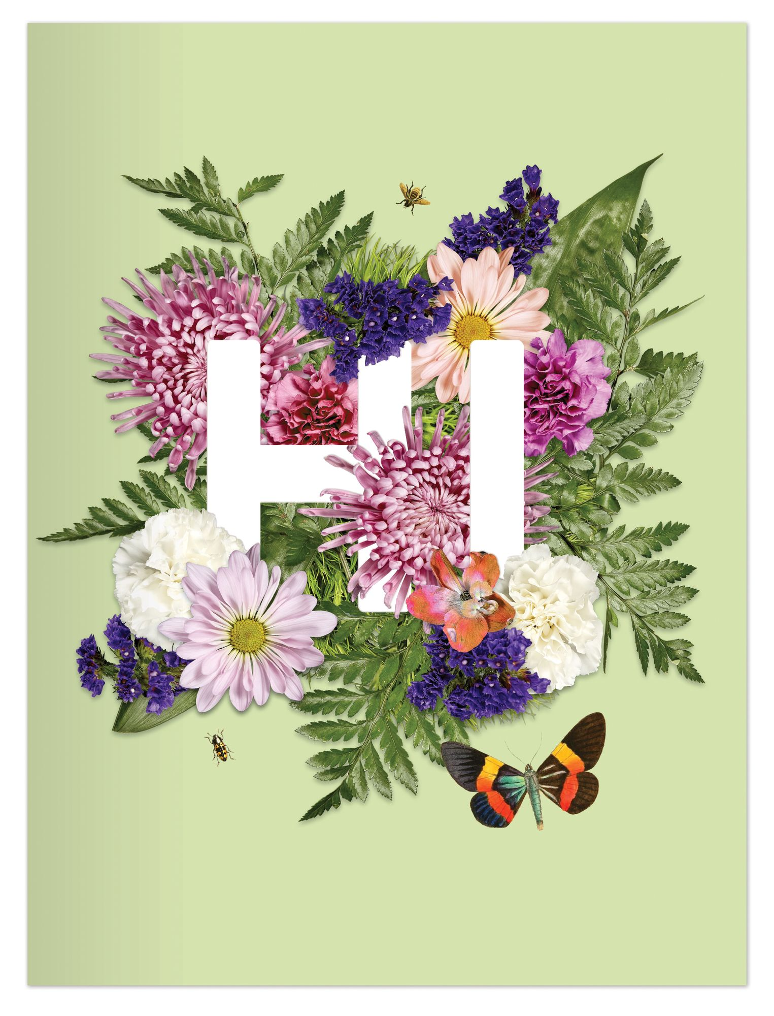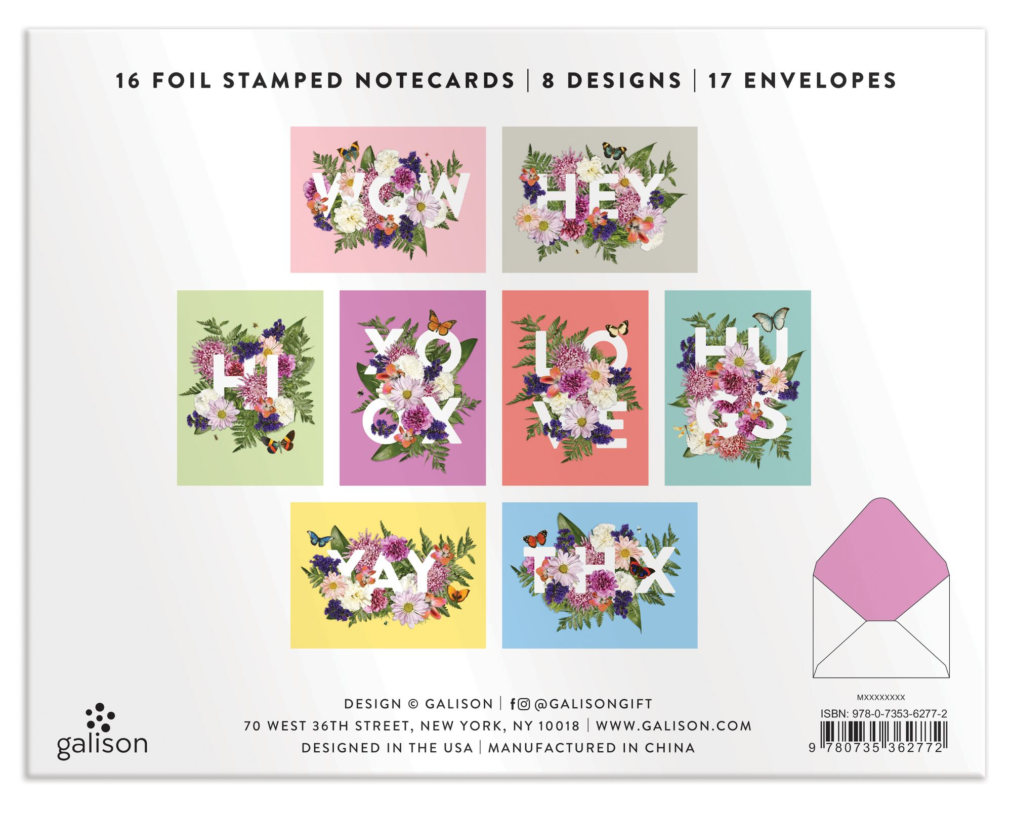 The Say It With Flowers Greeting Assortment Notecard Box from Galison features beautiful groupings of flowers on sold colored backgrounds with greetings overlaid and intertwined in shiny white lettering. The set is packaged in a nifty sturdy drawer box and includes 2 each of 8 designs and fun messages: Wow. Hey. Hi. Love. Hugs. Yay. and Thx.