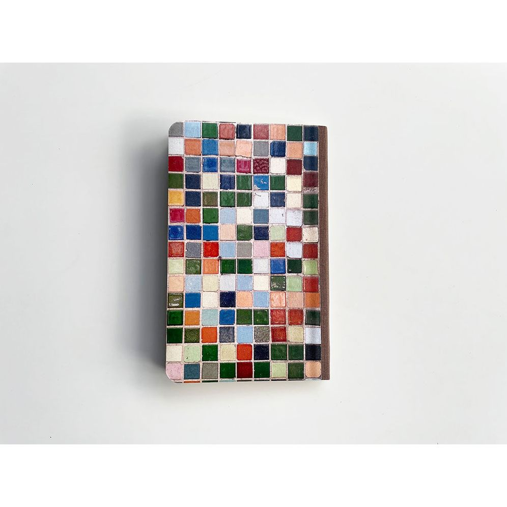 A soft cover yet resilient notebook that opens flat—ideal for those who enjoy squeezing their notebooks while writing. The cover of this notebook features a vibrant oasis of color. inspired by a fragment of mosaic tiles from a house in the Narvarte neighborhood of Mexico City.