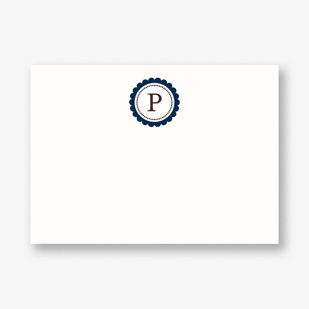 Our cute scallop circle in a variety of bright colors makes a happy frame for your initial. Printed on superfine white paper. which has a smooth finish and is soft to the touch. 130# cover weight paper with 30% post consumer recycled content.