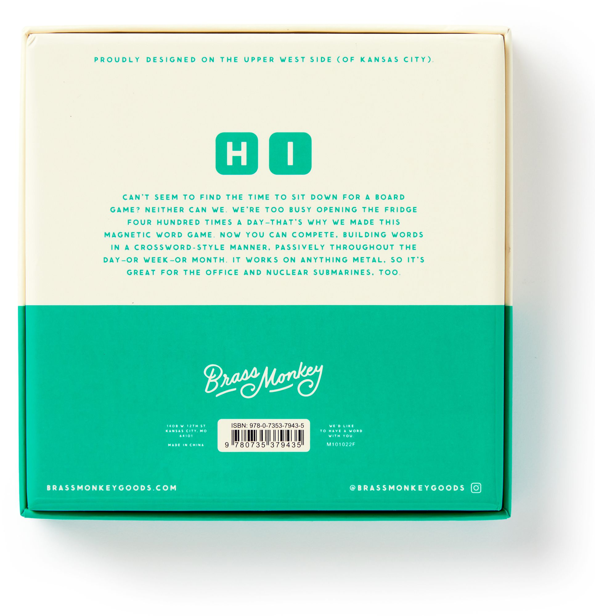 Can’t seem to find the time to sit down for a board game? Neither can we. We’re too busy opening the fridge 400 times a day?Cthat’s why we at Brass Monkey made this magnetic version of the game. Now you can compete. building words in a crossword-style manner. passively throughout the day?Cor week?Cor month.