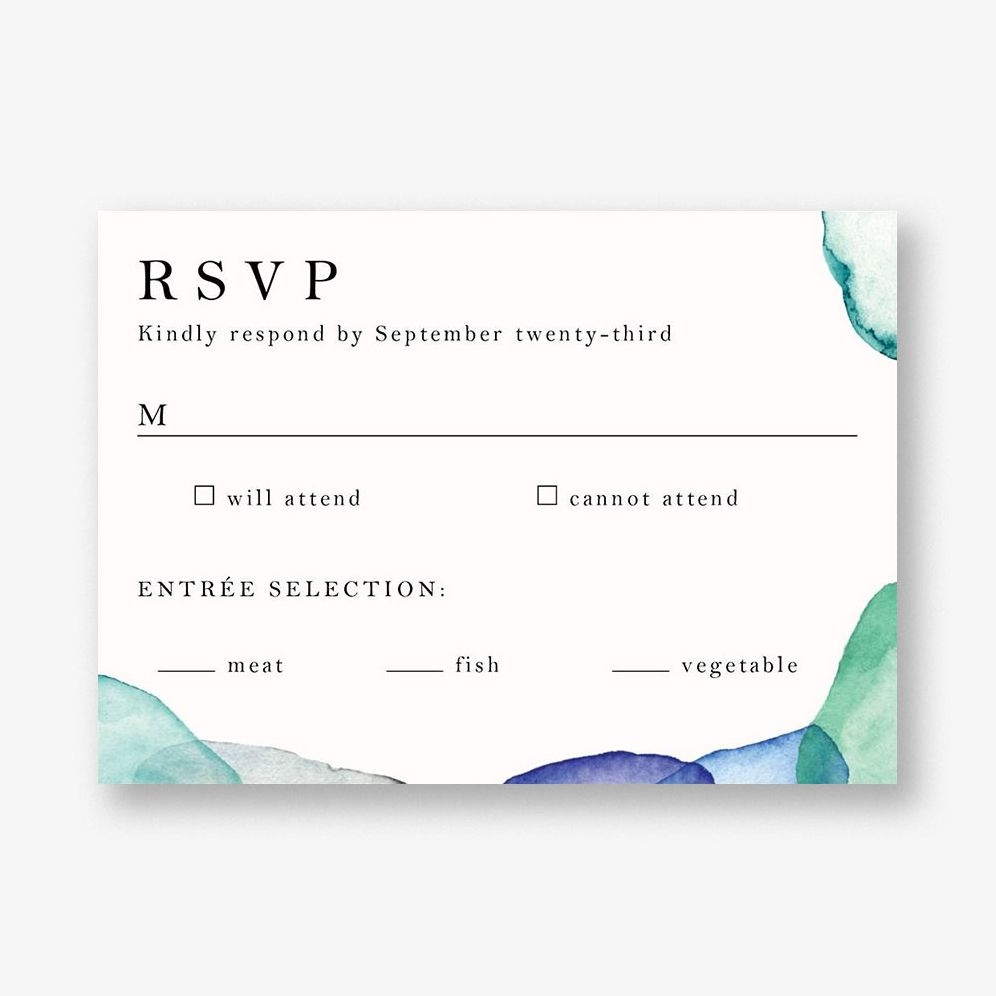 Complementing the Seaglass Wedding Suite. this response card features a painterly nautical border. designed in-house at Paper Source. Printed on Mohawk superfine white 130 lb. card stock that is soft to the touch and matches our superfine white envelopes. Paper is FSC certified and made using wind power.