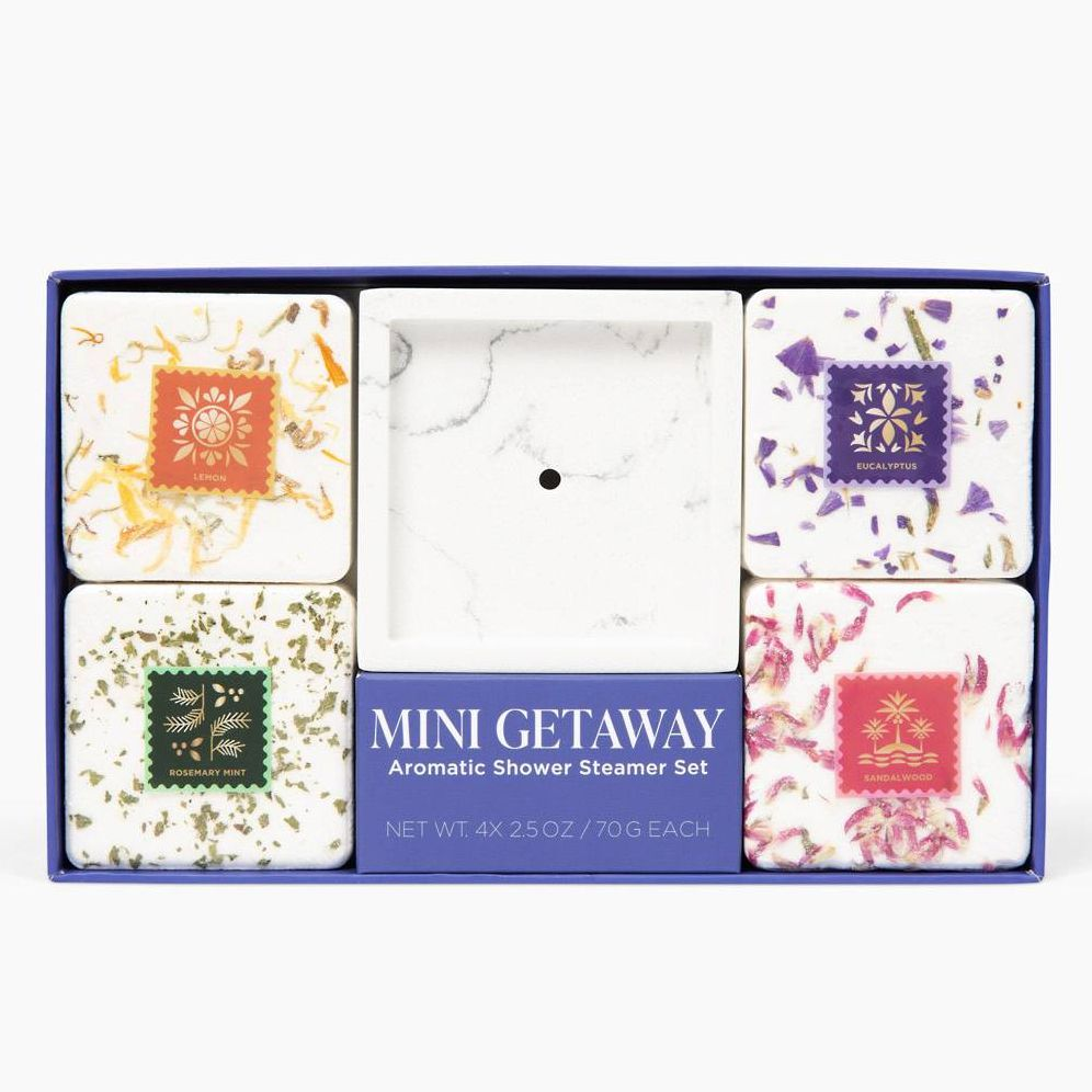 Create a mini-getaway. right in your shower. with our essential oil shower steamer set. Each steamer is carefully crafted to create a sensory experience; the dainty botanicals and the lovely scents. The elegant dish holds the steamer on your shower floor and will give you spa vibes. The perfect gift for yourself or someone who needs a getaway moment.