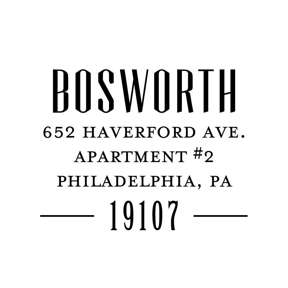 Your stamp plate will be produced with the capitalization and font shown in the sample.