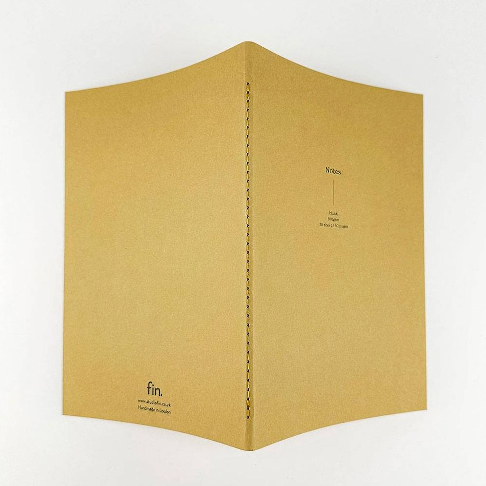 Vita Series Handmade Notebook! Designed and made by Fin Studio / Available in A5 / 60 pages – Blank FSC certified 100gsm acid free paper & color is ivory / Materica Verdigris 250 gsm cover / Single sewn / Comes with compostable-biodegradable film bag