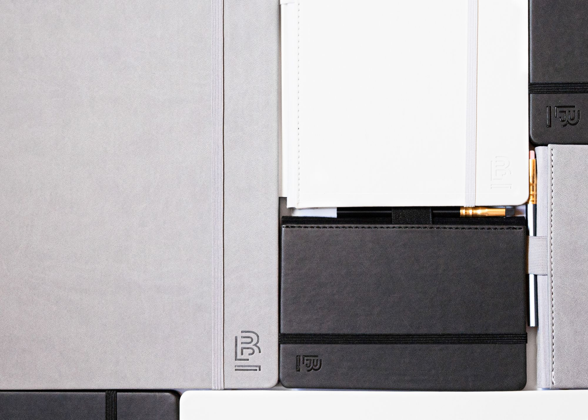 Every Slate notebook features our signature lay-flat binding. matte cover. and pencil holster that comes loaded with a Blackwing pencil.