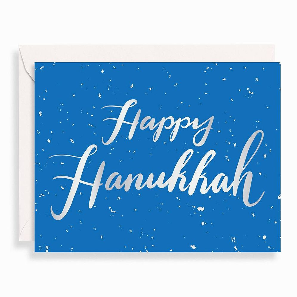Send your sweet holiday wishes with these festive cards. Features silver foil speckles and lettering that reads. Happy Hanukkah.
