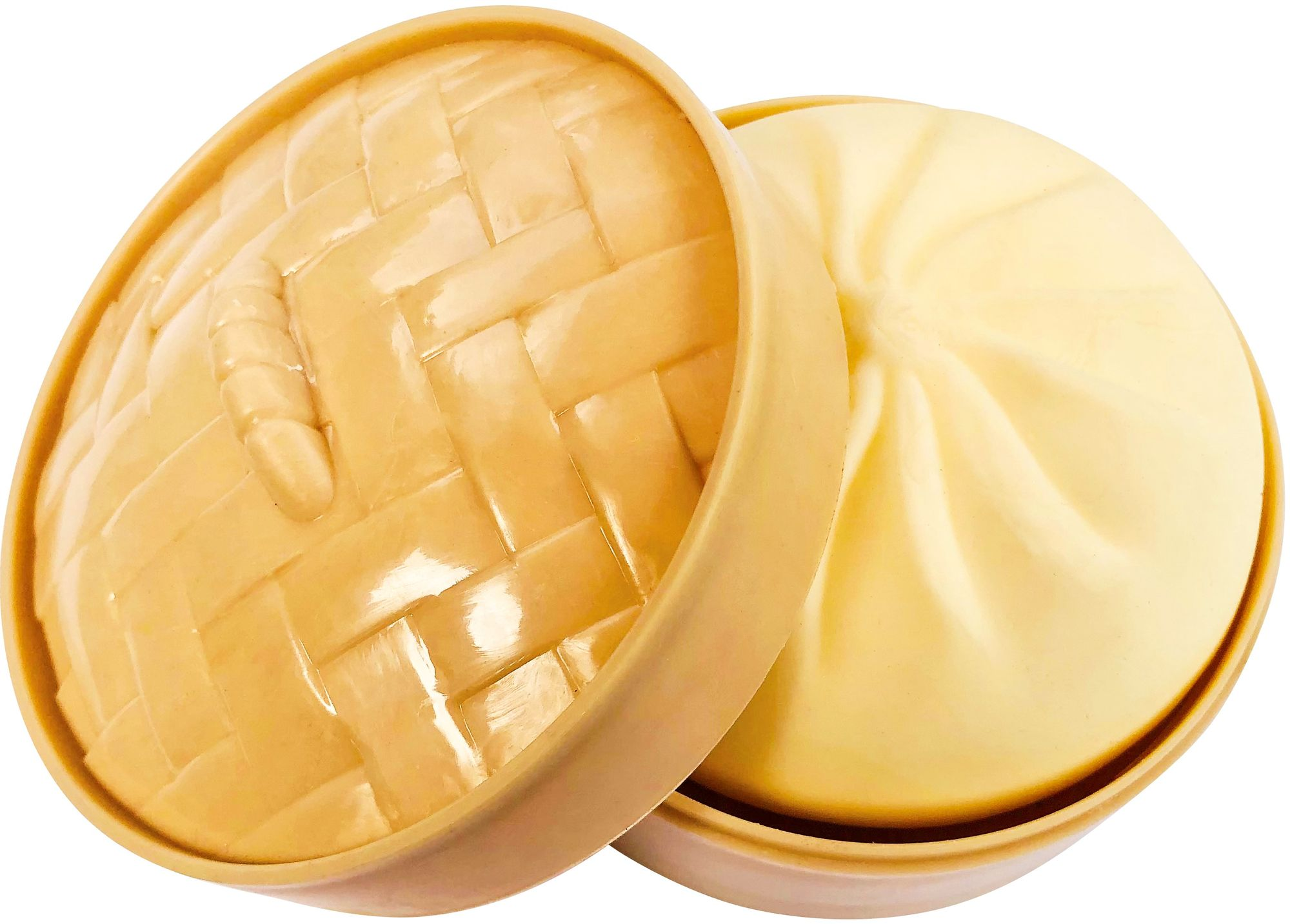 Squish toy shaped like a dumpling. includes case for the dumplin’