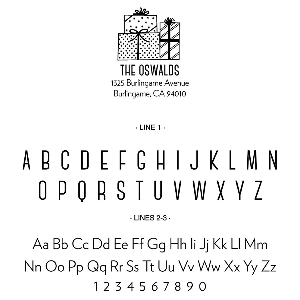 Your stamp plate will be produced with the capitalization and font shown in the sample.