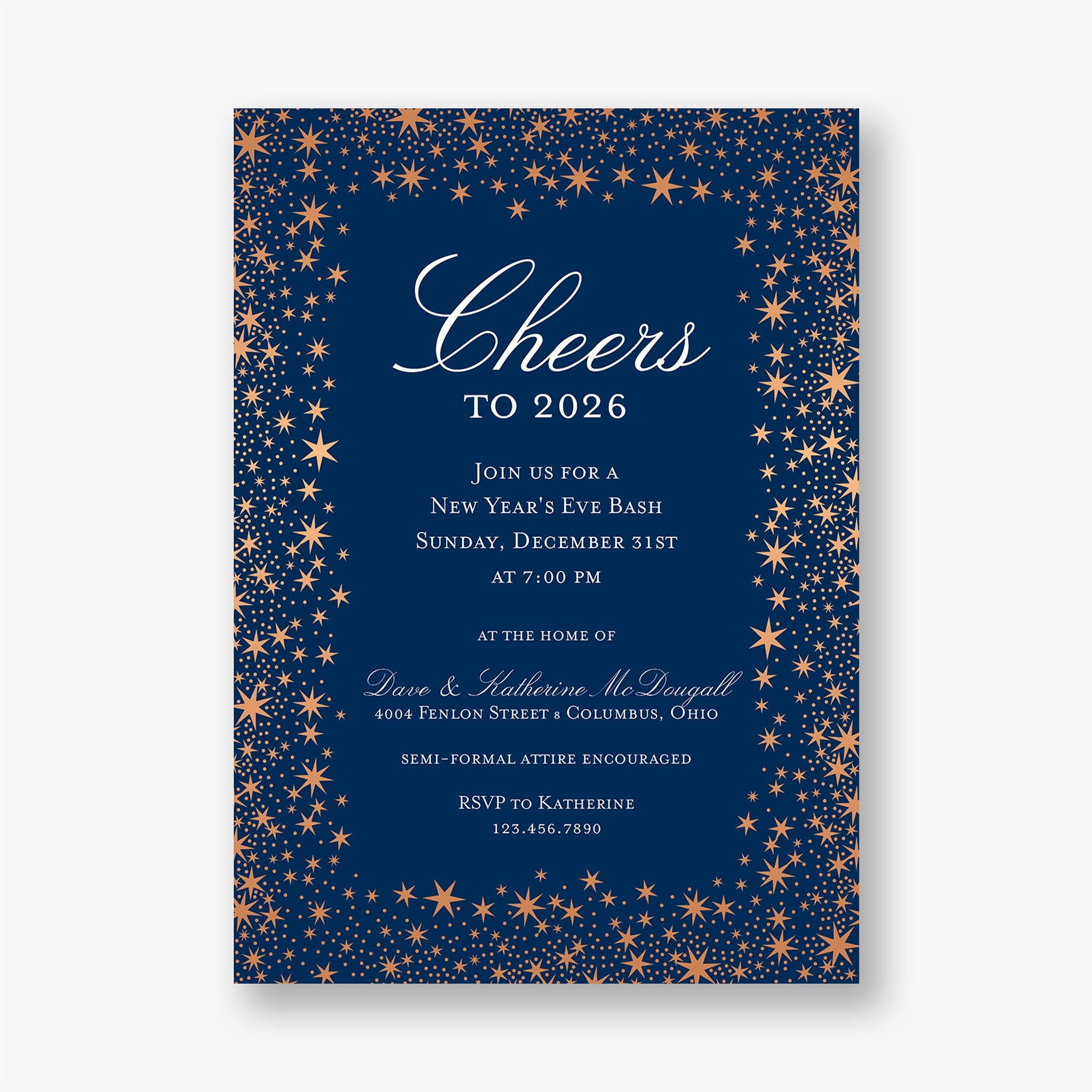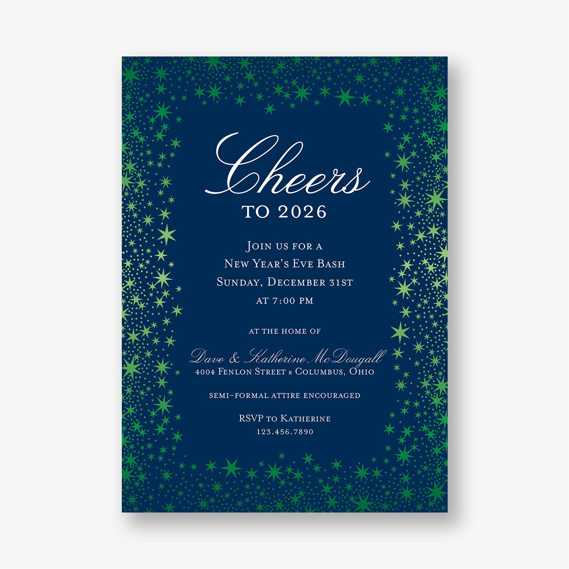 Impress your guests with one of our unique custom holiday party invitations featuring artwork created by our designers in Chicago. Printed on Mohawk ultra white 120 lb. card stock that is soft to the touch and matches our superfine white envelopes. Paper is FSC certified and made using wind power.