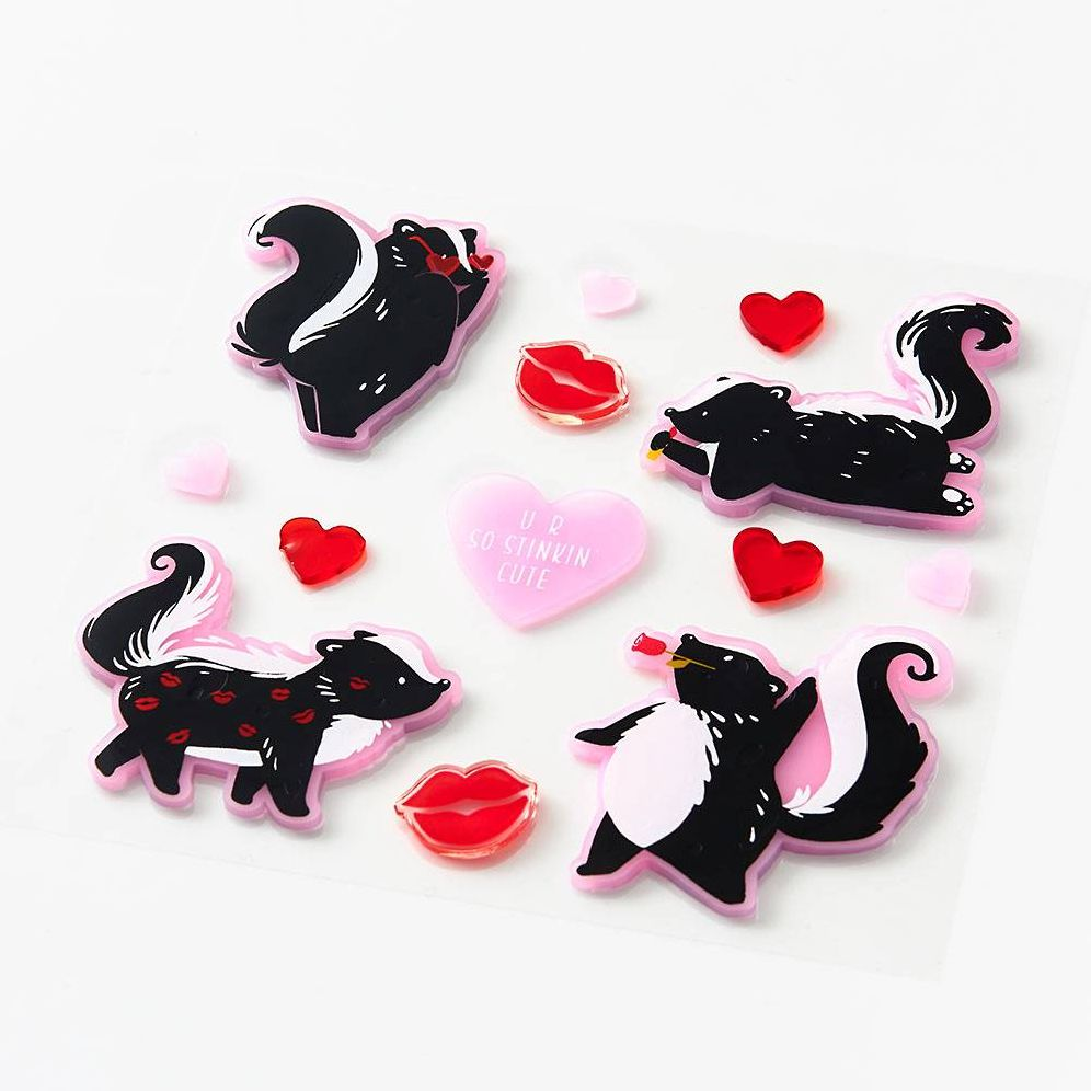 This 13 piece set of gel clings features this adorable skunk critter who is ready for Valentine’s Day!