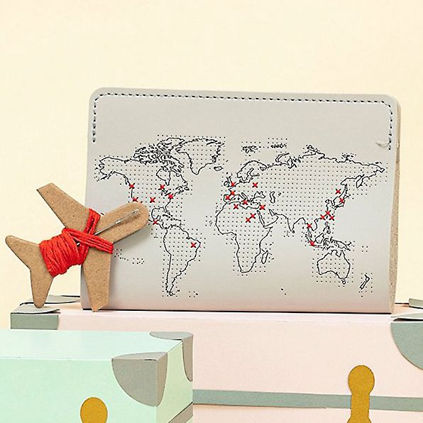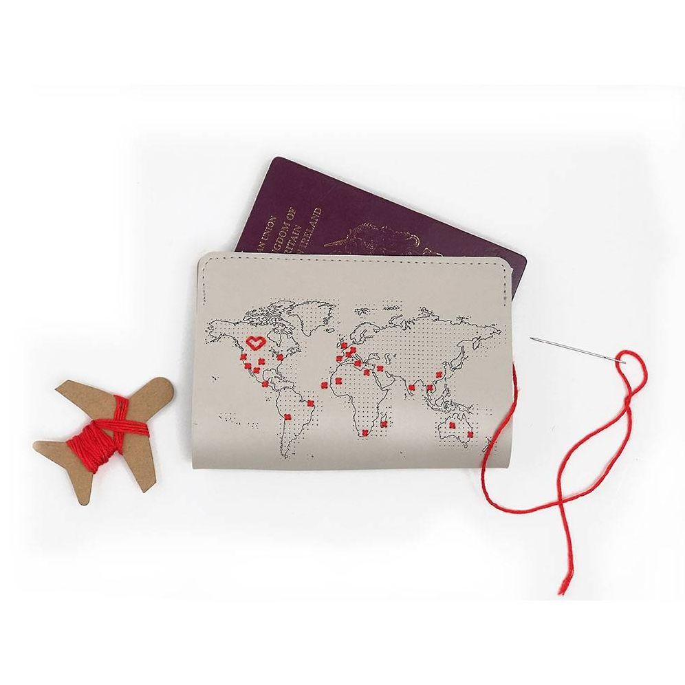 The Light Grey passport cover is printed with world map and is specially perforated. so each country visited can be marked with a colorful cross. This beautiful passport cover makes a classy addition to your travel accessories. It come with a ˜travel’ needle and bright red thread included. ready to be cross-stitched with global travels. It is very easy to stitch and an ideal gift for those off on a new adventure- even if they have not sewn before!