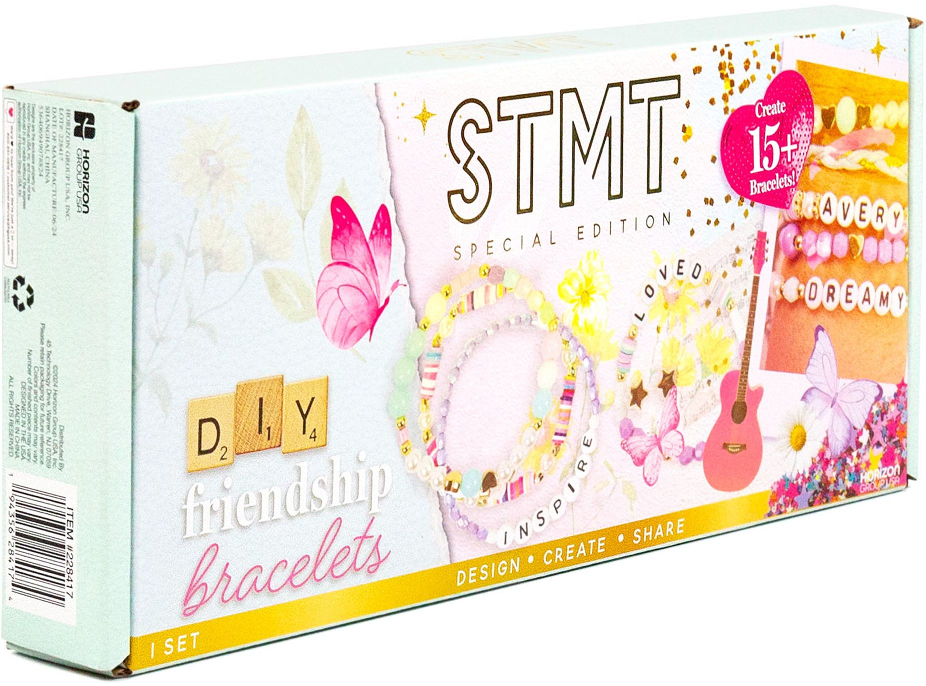 Prepare to fall in love with bracelet-making and design the perfect stack with the STMT D.I.Y. Flower Friendship Bracelets set! Packed with over 300 beads in a vibrant variety of colors. types. and styles. plus elastic cording and friendship thread. you can create over 15 custom accessories to stack and share with friends. Learn trendy techniques like perfect harmony friendship bracelets and pastel diagonals. or braid and bead your way to beautiful bracelets. This kit is perfect for all skill levels and anyone who loves a good bracelet stack!