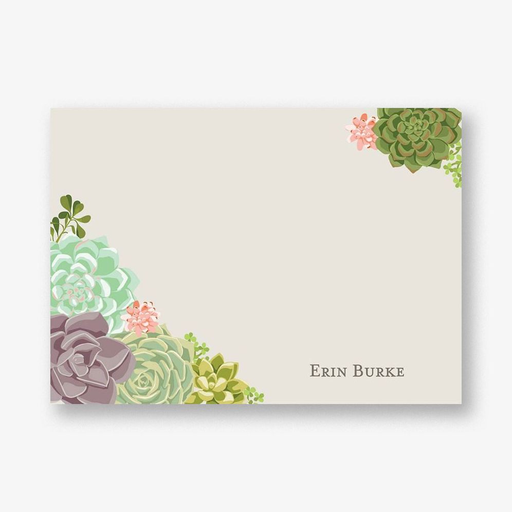 Our succulent gardens offer a wonderfully unique design for any occasion. Whimsical and unexpected. it is a delightful stationery design. Printed on superfine white paper. which has a smooth finish and is soft to the touch. 130# cover weight paper with 30% post consumer recycled content.