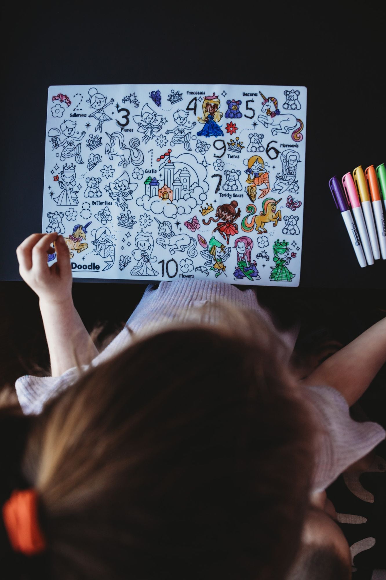 Practice writing the number figures whilst counting to find all items corresponding to it. Make the fairies and unicorns come to life with bursts of colour! Can be wiped clean and reused!