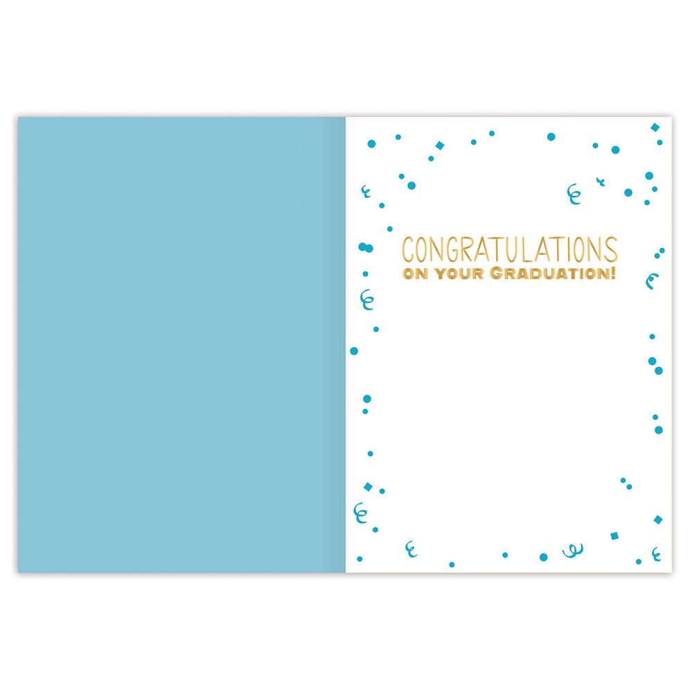Graduation card by Emily Dumas. Outside caption You did it!. Inside caption Congratulations on your Graduation!.. Includes gold foil accents. Designed and printed in USA.
