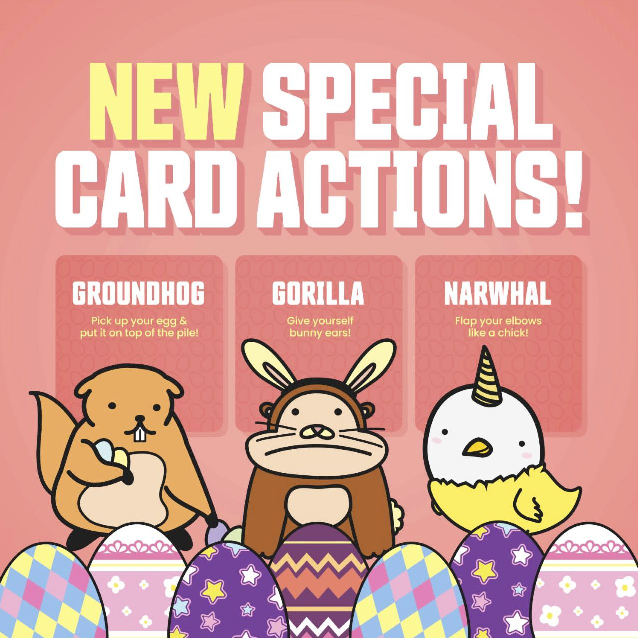 - New actions for Gorilla. Groundhog. and Narwhal. with new Easter egg cards