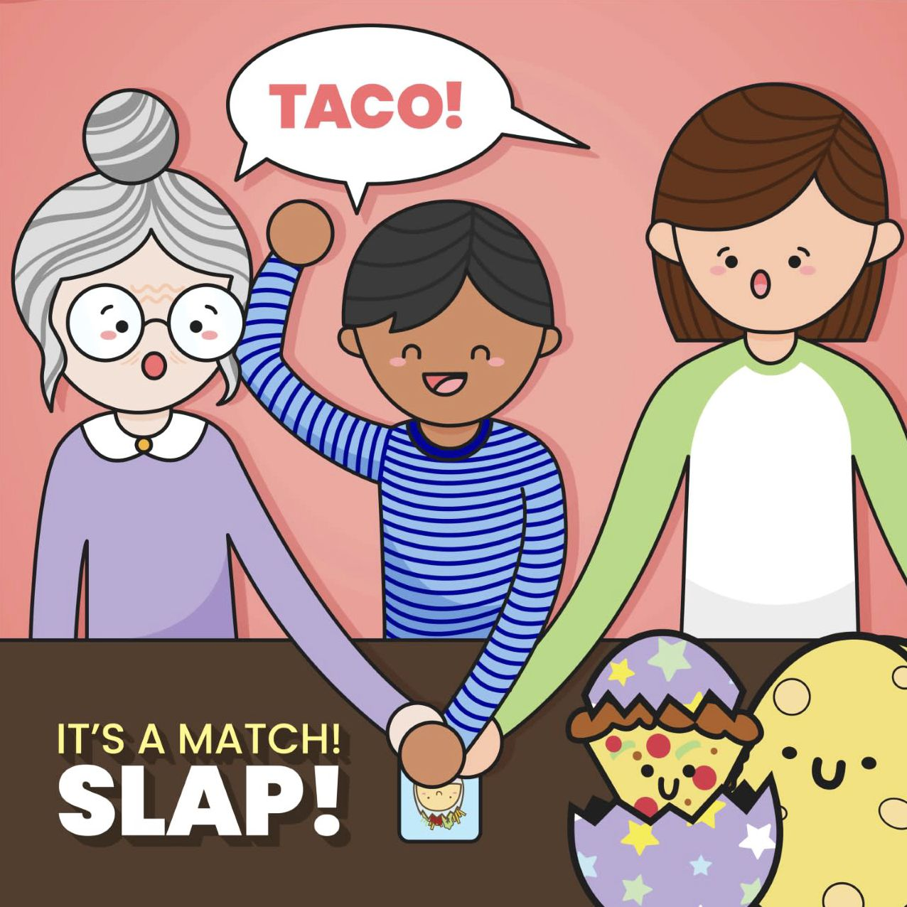 An addictive game is as unique as its name. It’s a quick simple party game. Race against each other to SLAP a match between a card and spoken word. But – watch out! Your mind will play tricks on you. This game was engineered for maximum fun. Enjoy!