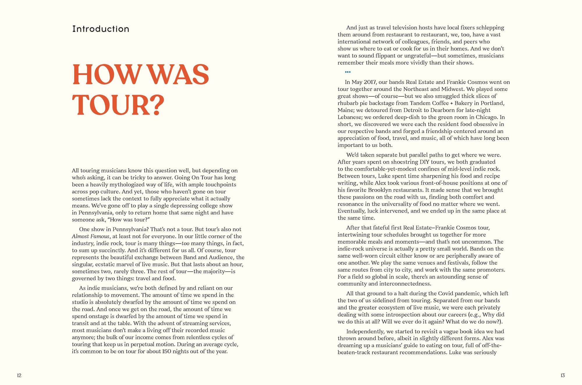 So the question isn’t. How was tour? It’s. What do you eat on tour? Like the best songs or meals. these conversations and essays evoke something central about the human experience. They show us all the ways that music and food bring us together. break us down. lift us up. and add color to our lives.