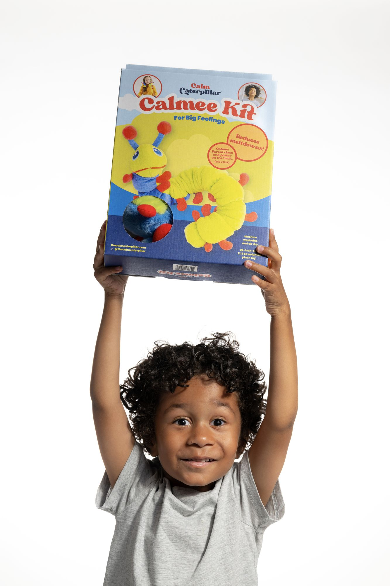 Calmee the Caterpillar is a soft plush toy. designed to help teach children how to regulate their emotions through sensory input and deep breathing! The Calmee Kit includes a Hand Breathing activity and access to an 18-minute online parenting course!