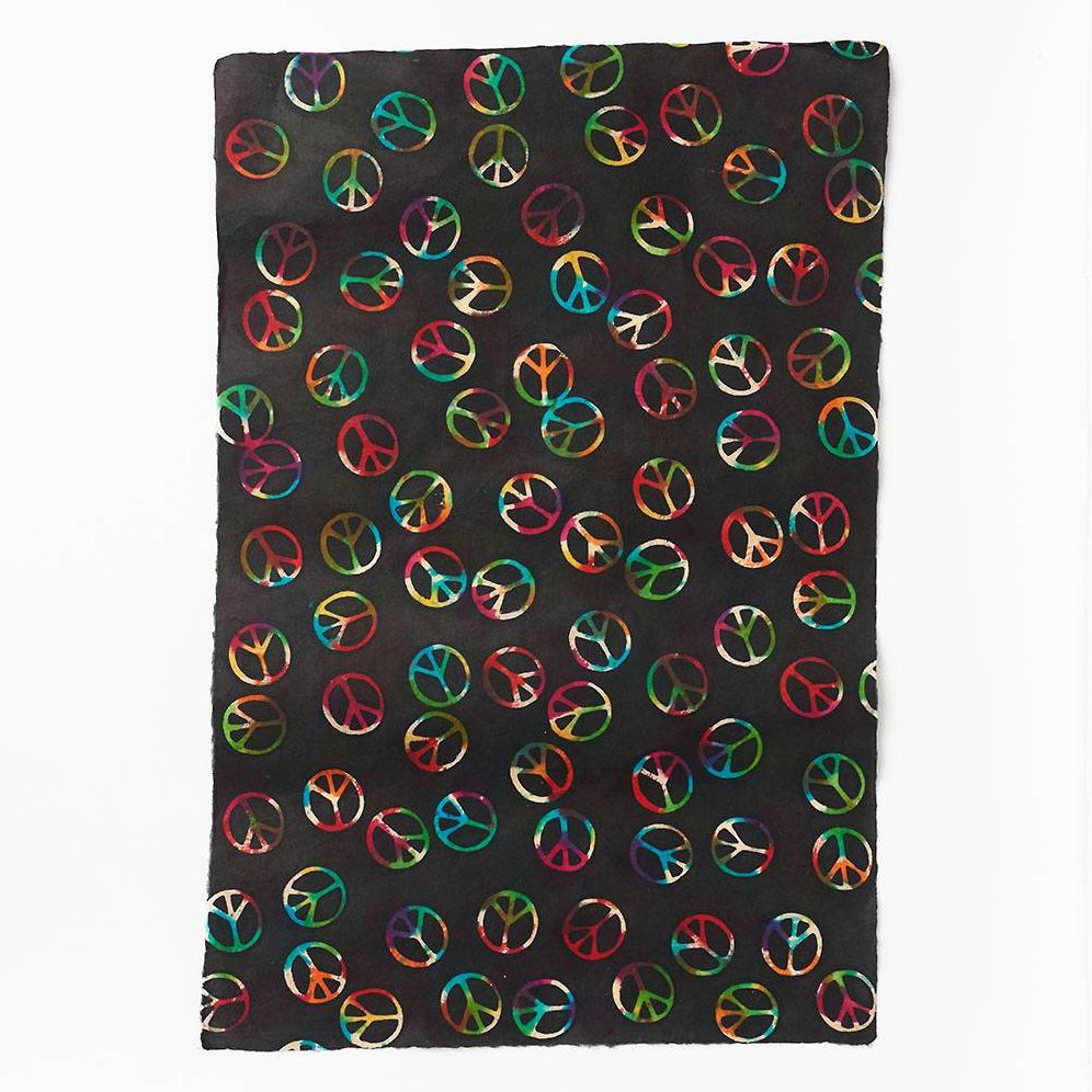 This unique printed fine paper features a fun design tie dye peace signs on black handmade paper!