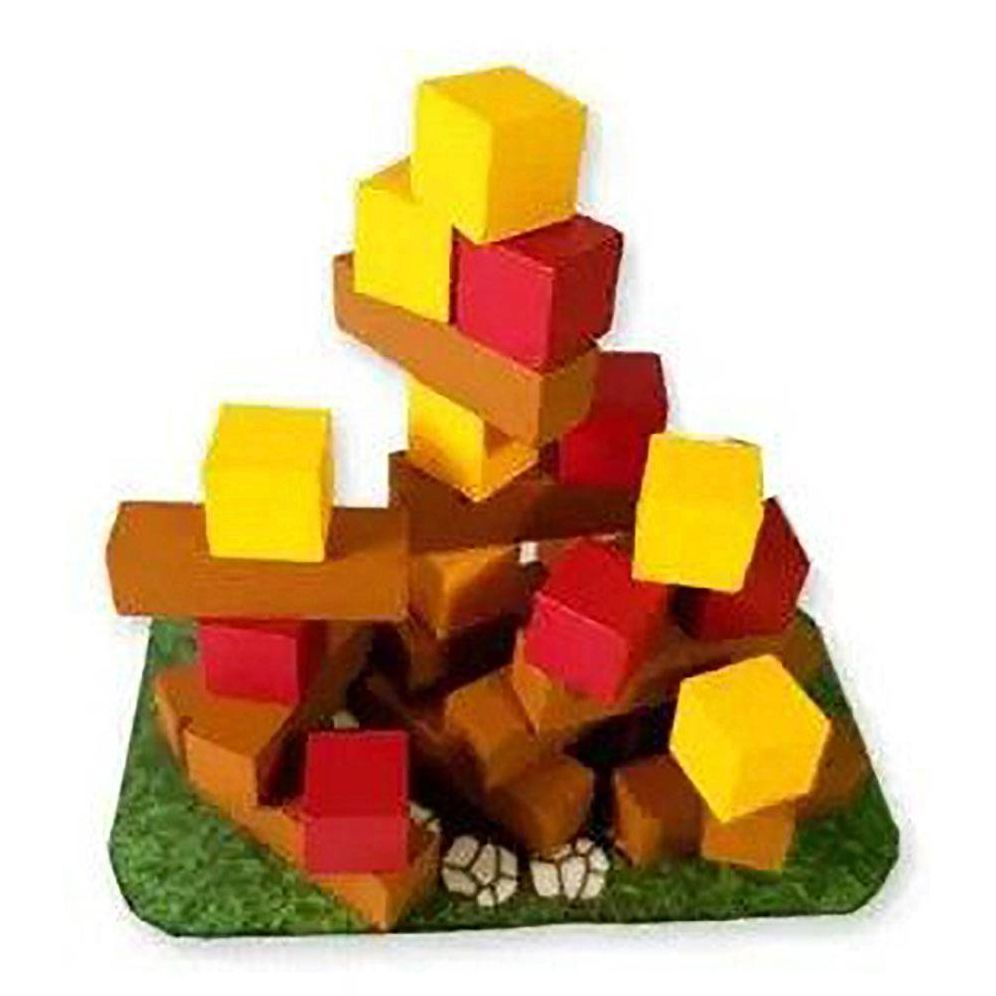 The fun mint-tin sized dexterity game gamers and non-gamers will love!Tinderblox sets players in a campfire setting. where each player will attempt to grow the fire! But watch out! Place the blocks badly and you risk burning down the camp!Each turn players will draw a card from the campfire deck. The card will instruct them to place on the campfire a log. a fire block or any combination of the two (or more) in various orientations. Players use tweezers to Play with fire in a shared pool. however. once all pieces have been put together and are off the ground the player must carefully place this on the campfire!The player who is the most careful with fire wins!For Ages: 6+WARNING: Choking Hazard; Small Parts. Not for children under 3 years old.