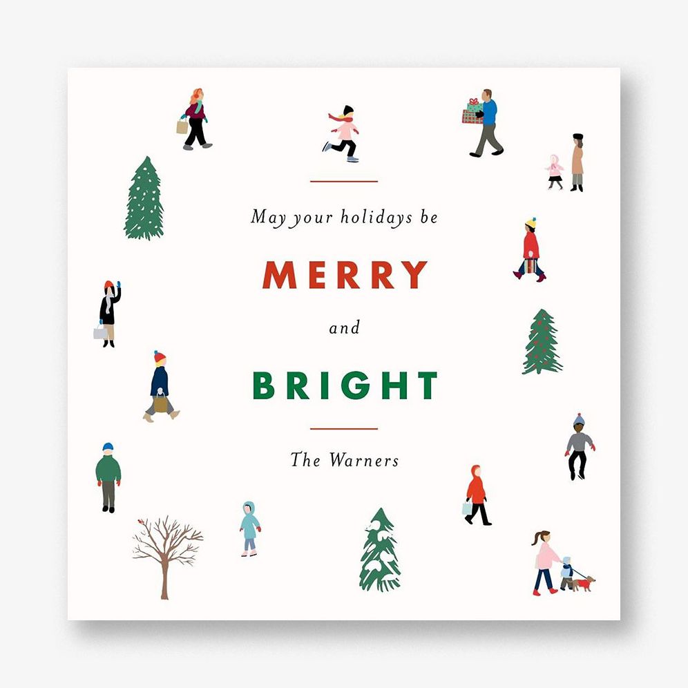 Put your loved ones in mind of crisp winter weather and fresh fallen snow with these festive holiday cards featuring our most loved seasonal activities. Designed by Paper Source.