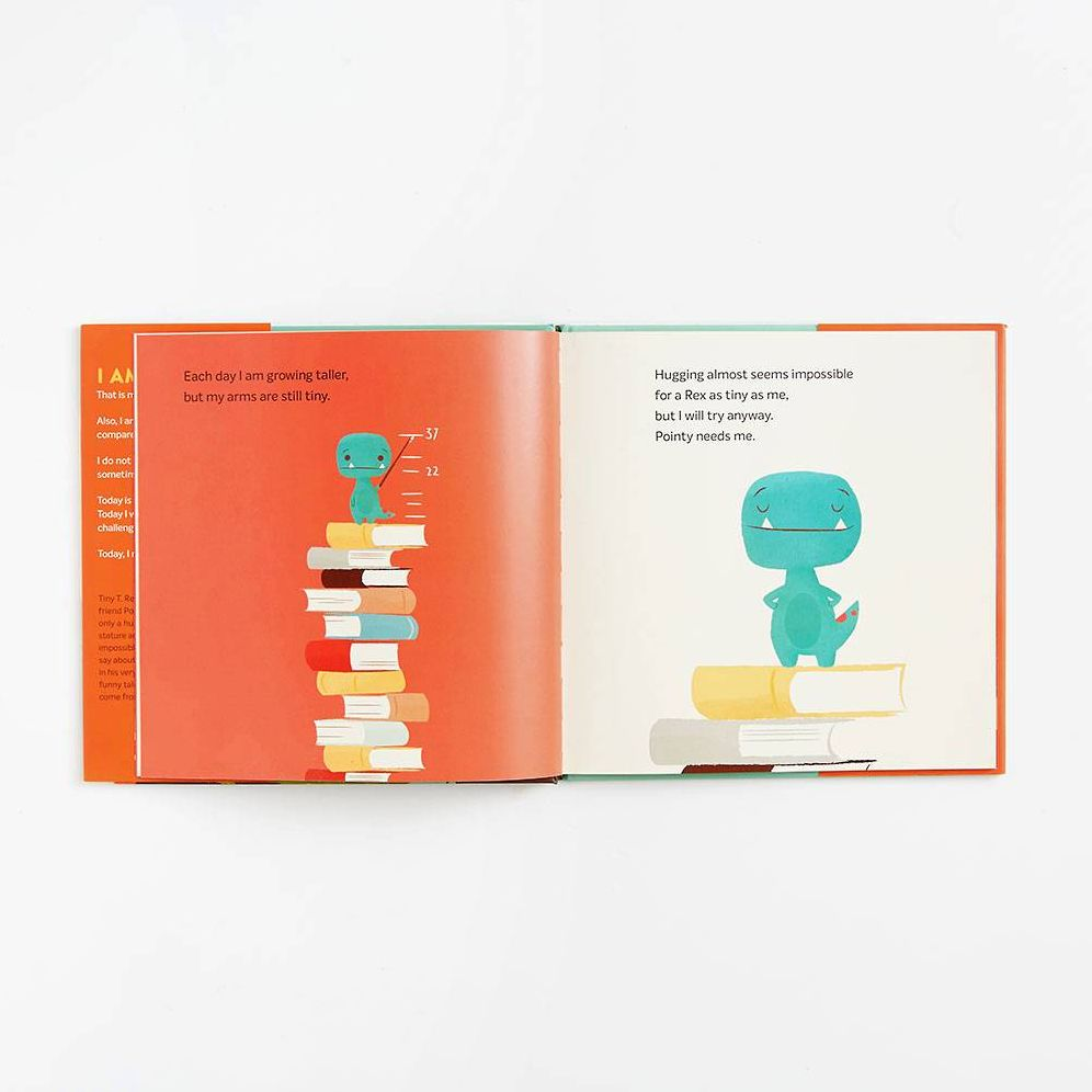 Tiny T. Rex has a HUGE problem. His friend Pointy needs cheering up and only a hug will do. But with his short stature and teeny T. Rex arms. is a hug impossible? Not if Tiny has anything to say about it!