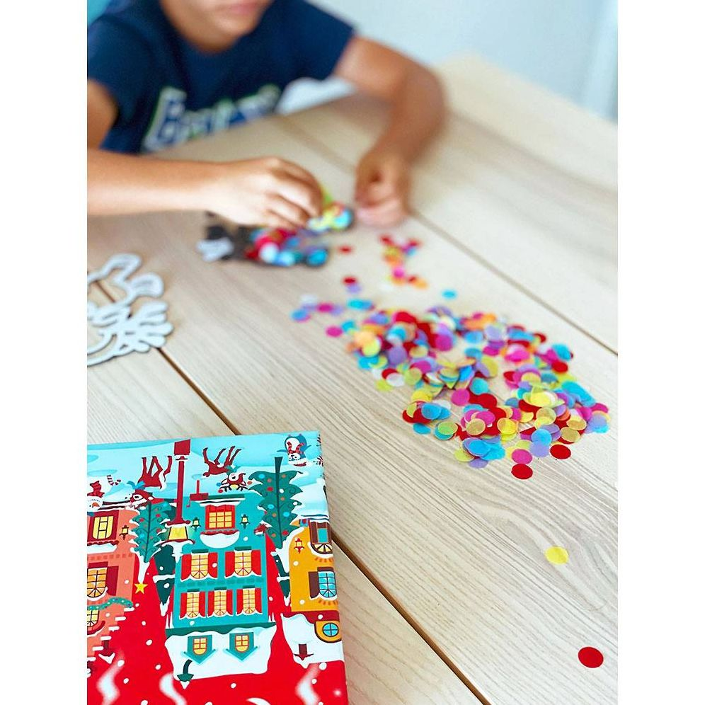 Deck the windows (and Christmas tree. too!) with colorful light catchers that cast a festive holiday glow all around! Use the felt frames and colored tissue paper circles to create four different light catchers: a snowman. Christmas tree. ornament ball and reindeer. Attach them to a window with the suction cups or hang on the Christmas tree. to catch the light for a festive holiday sparkle!