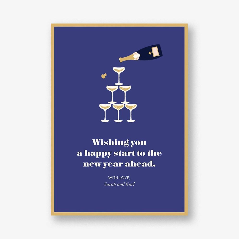 Let those you love know that you’re thinking of them with this personalized holiday card from kate spade new york by Paperless Post. This card pictures a tower of champagne and can be further customized with a message from you and your family. Printed on Mohawk ultra white 120 lb. card stock that is soft to the touch and matches our superfine white envelopes. Paper is FSC certified and made using wind power.