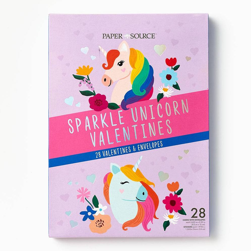 What says Valentine’s Day more than sparkles and unicorns! This cute and glittery set features 28 cards. four of each design.