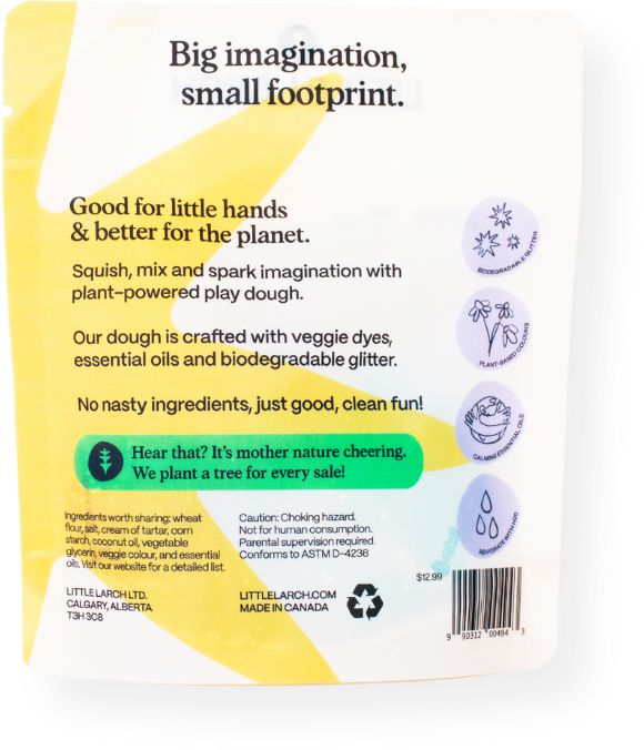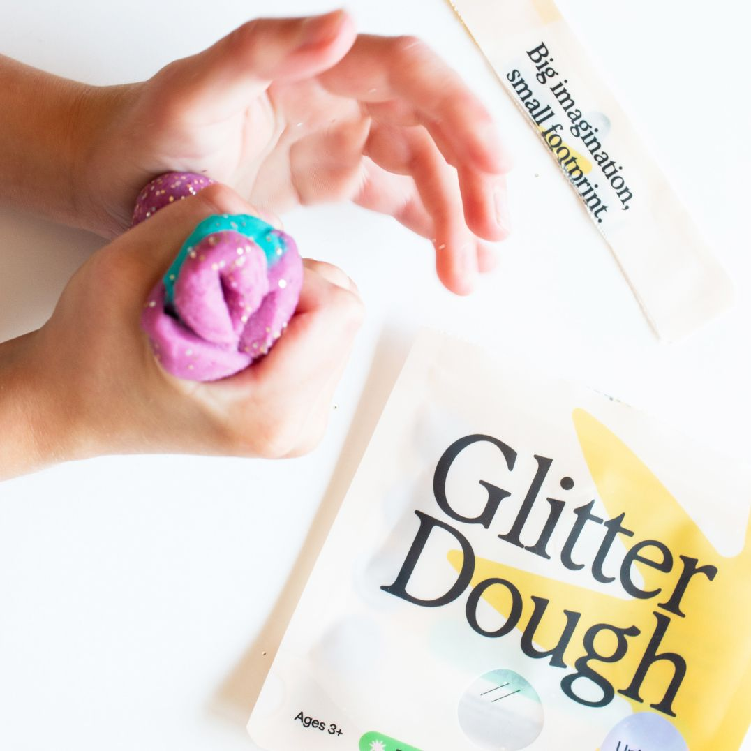 Our all natural Glitter Dough was created to make dough mixing fun & beautiful! Made with complimentary colours. each batch is crafted with plant-based dyes. essential oils and biodegradable glitter. Every purchase plants a tree! Good for little hands and better for the planet.