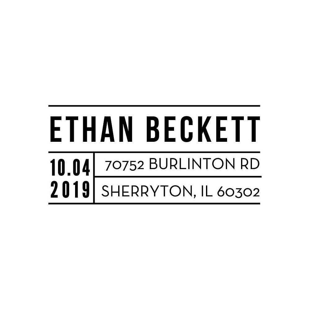 Your stamp plate will be produced with the capitalization and font shown in the sample.