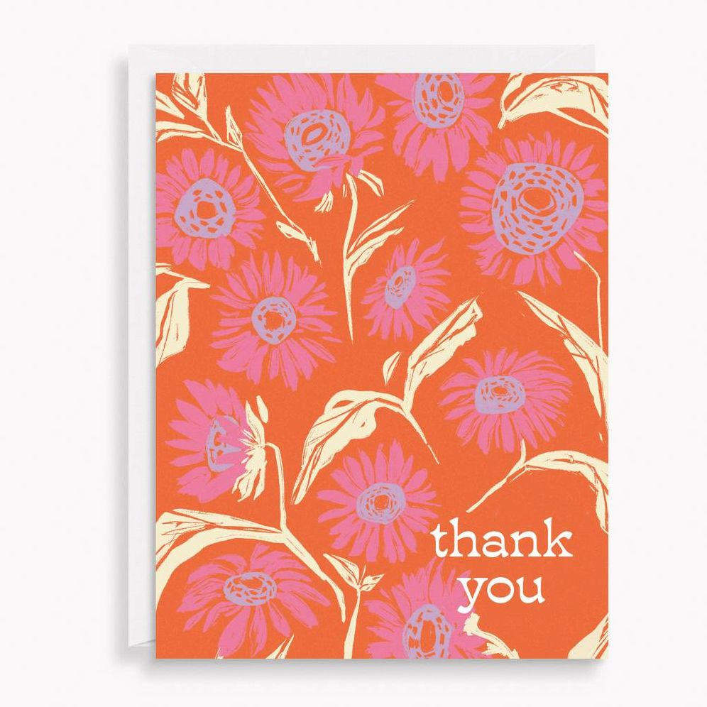 Folded thank you cards featuring floral and mountain landscape art. Blank inside. Set of 12. with four cards of each design. Envelope color may vary.