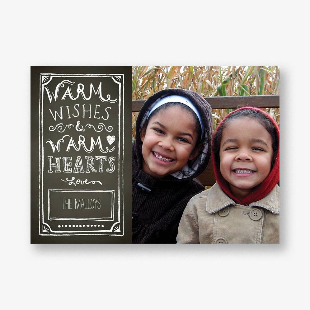 Enjoy the vintage charm of this chalkboard inspired card. featuring a unique hand lettered greeting and your adorable holiday photo on the front. with the hand lettered greeting continuing onto the back! Printed on Mohawk ultra white 120 lb. card stock that is soft to the touch and matches our superfine white envelopes. Paper is FSC certified and made using wind power.