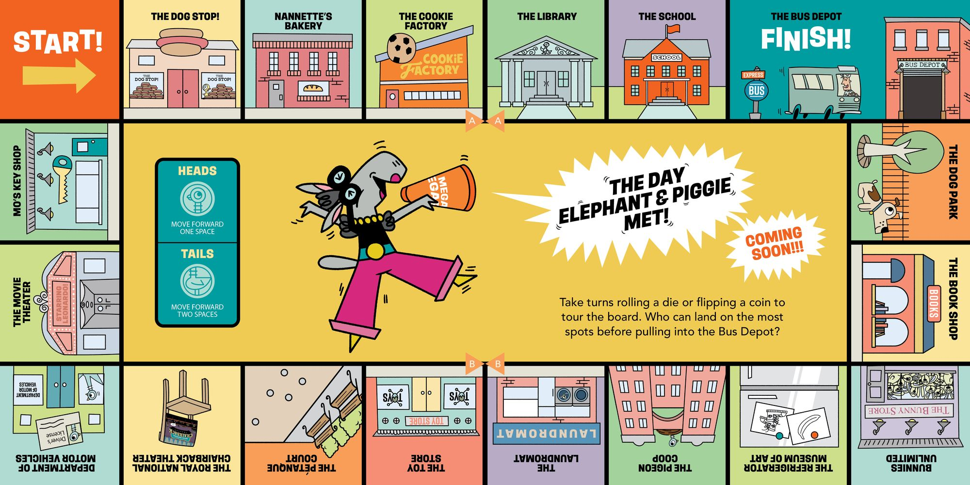 Mo Willems. #1 New York Times bestselling. award-winning author-illustrator. invites kids to take center stage in this one-of-a-kind theatrical event! Get your backstage pass to the world premiere performance of THE DAY ELEPHANT & PIGGIE MET!