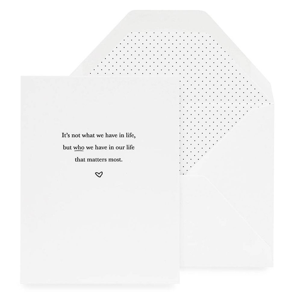 Send your love with this sweet message. Card reads. It’s what we have in life. but who we have in our life that matters most.