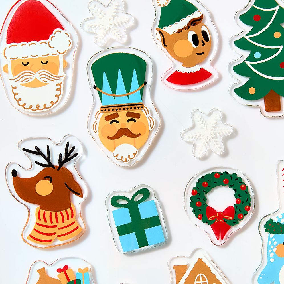 Add some holiday magic to your windows with our whimsical gel clings! This set of 14 whimsical gel clings features novelty icons like fun elves. Santa. reindeer. presents. and other jolly holiday designs. Paper Source Designed and Exclusive.