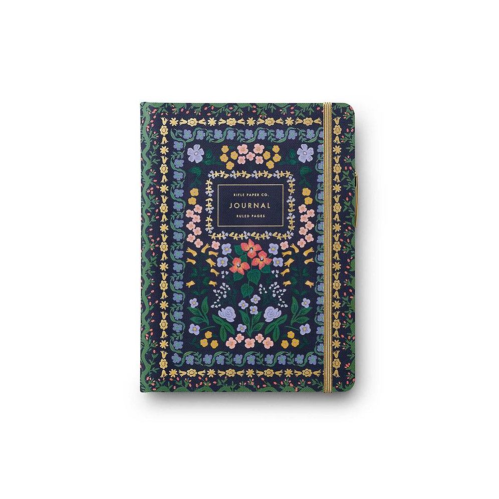 Designed for note takers and journalers. this hardcover journal comes with a gold pen with black ink. and features 144 ruled pages. an elastic band. and a pocket for extra storage.