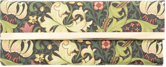 Secure your glasses in style with our triangular foldable case showcasing a design adapted from Golden Lily wallpaper. and accented with a gold metal bar. Folds flat for convenience.