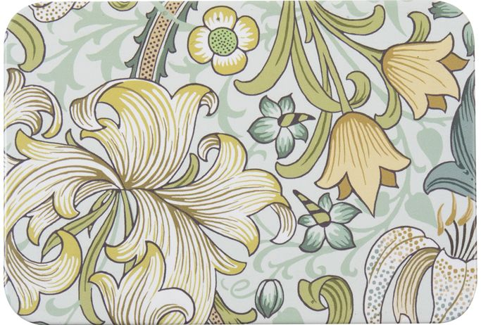 Travel friendly. French milled hand soap with scents of rose. jasmine and summer florals. reminiscent of a cottage garden. Packaged in a beautiful tin adorned with a design adapted from Golden Lily wallpaper.