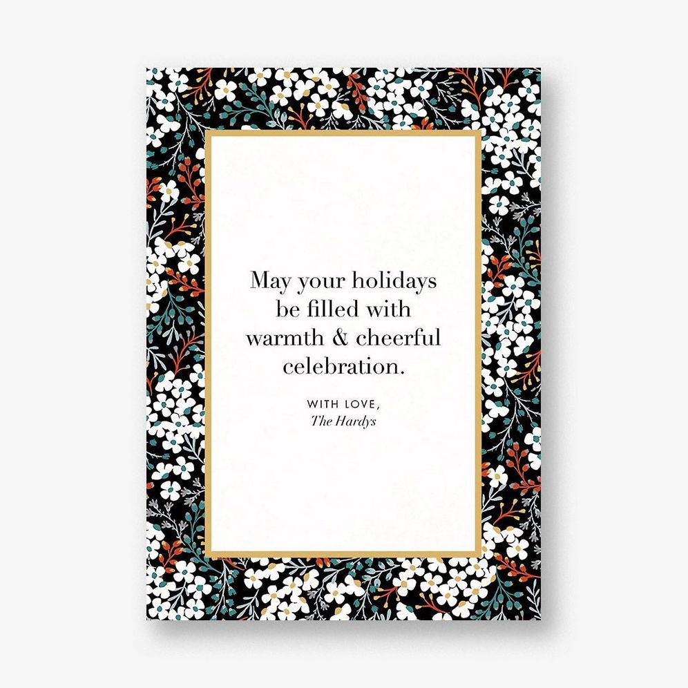 Let those you love know that you’re thinking of them with this personalized holiday card from kate spade new york by Paperless Post. This card pictures a lovely winter floral border and can be further customized with a message from you and your family. Printed on Mohawk ultra white 120 lb. card stock that is soft to the touch and matches our superfine white envelopes. Paper is FSC certified and made using wind power.