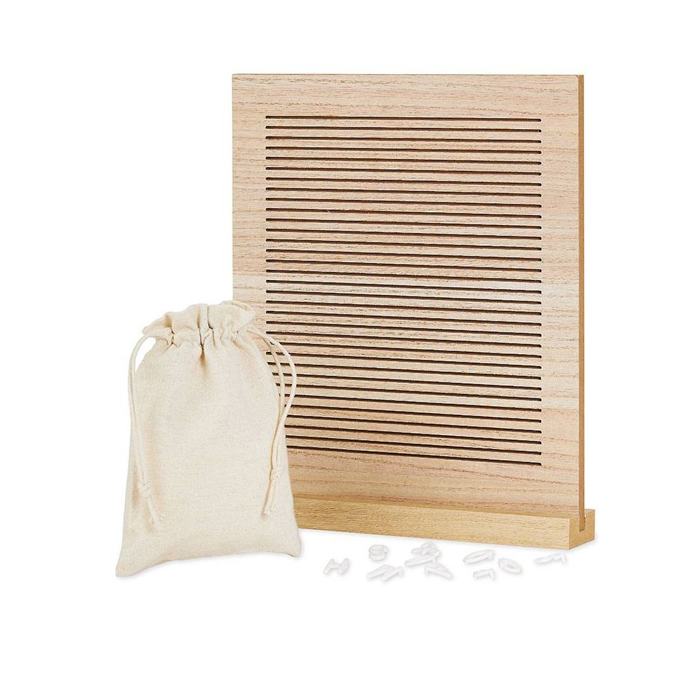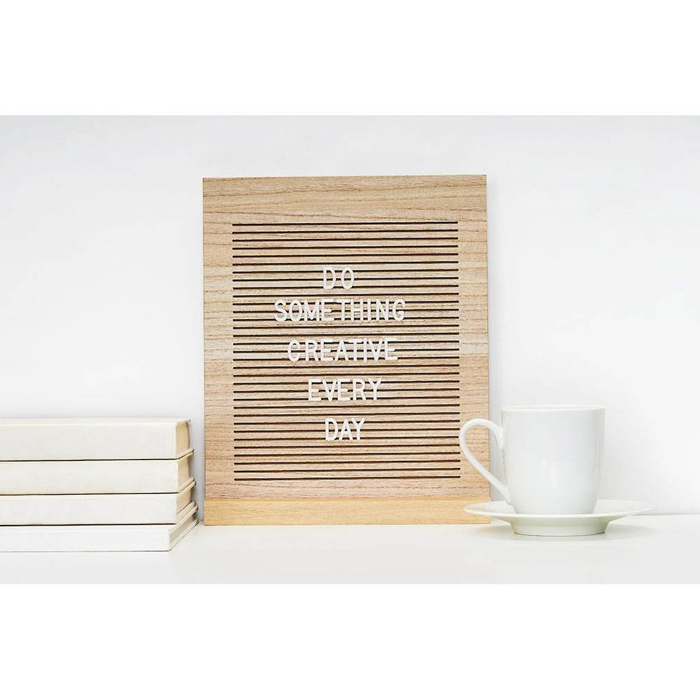 Add a personal touch to your space with this modern wooden letter board. Whether it’s a motivational quote. a daily reminder. or a fun message. this letter board is the perfect way to express yourself. Includes 145 white letters/numbers/symbols plus a cotton bag to store the characters in when not in use.