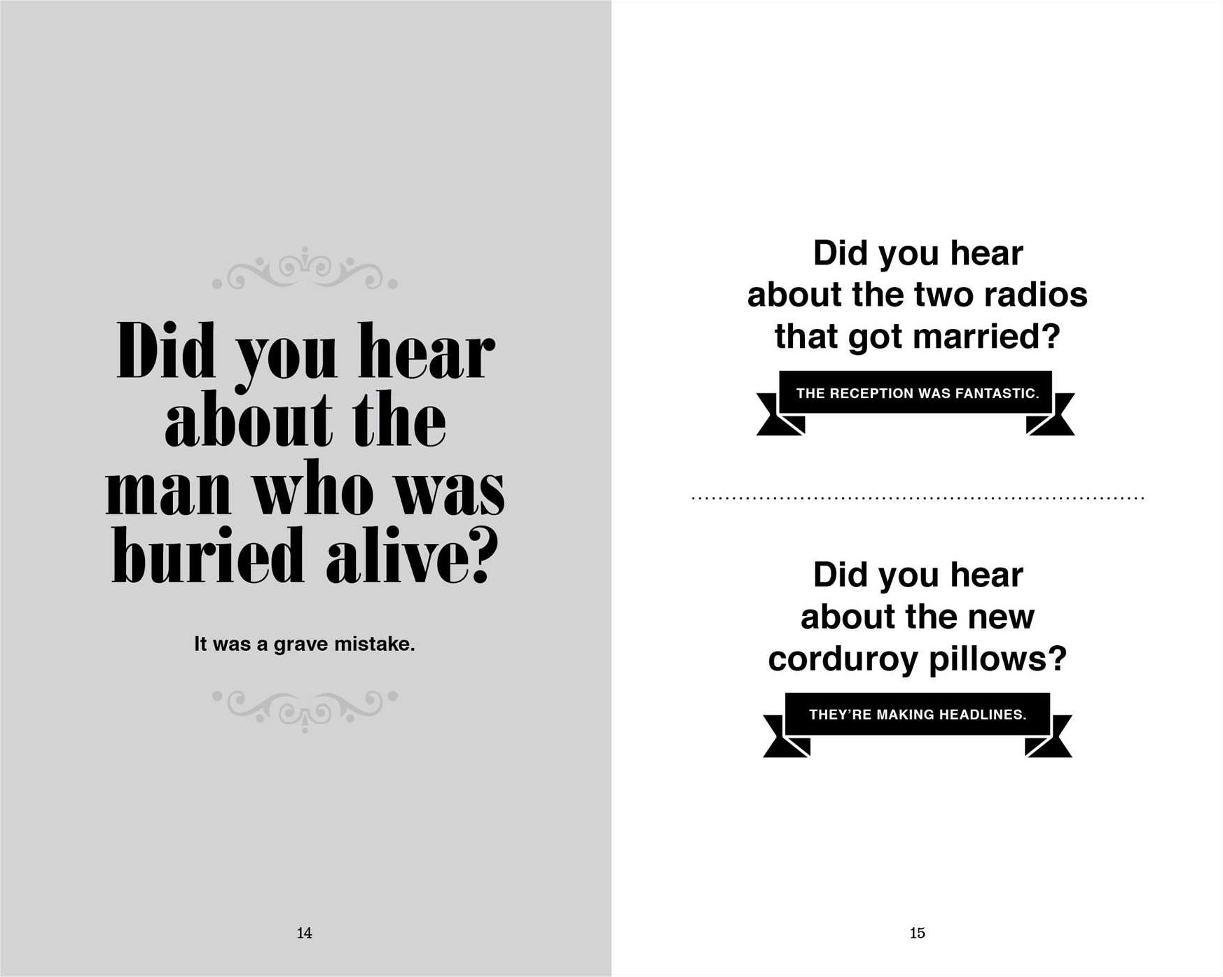 This is just one example of the 200 hilariously hokey knee-slappers and puns in World’s Greatest Dad Jokes. Tired of the same humdrum ill-fitting pants jokes. or jabs about turkeys being flightless birds? This perfect Father’s Day. Christmas or anytime gift will keep the dads in your life on the pulse of family-friendly corny humor that is all new and exclusive to this book. With this comically exhaustive resource on hand. everyone will be laughing with dads. not at them!
